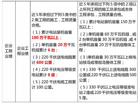 四、減少了對高級職稱人員的要求。取消了對企業經理、總會計師、總經濟師具有高級職稱的要求,強調技術負責人具有10年以上從事工程施工技術管理工作經歷,且具有電力工程相關專業高級職稱。