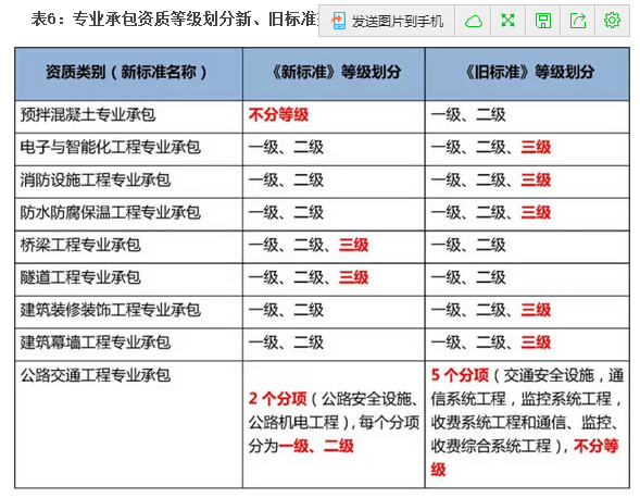 表6:專業承包資質等級劃分新、舊標準變化一覽表