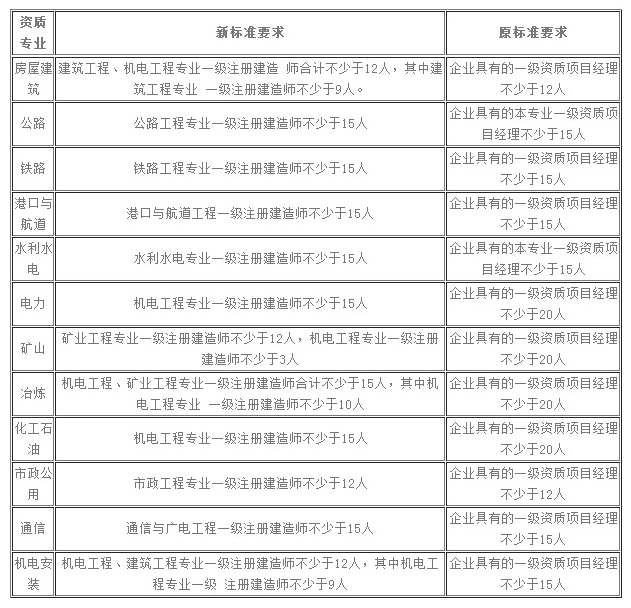 1、人數較多的專業,但需求量沒有變化的:公路公路新舊資質都要求15個本專業一建,眾多資質中,舊標準公路資質要求本專業。新標準對一建專業要求不變,數量要求不變,需求量就沒有什么變化了。